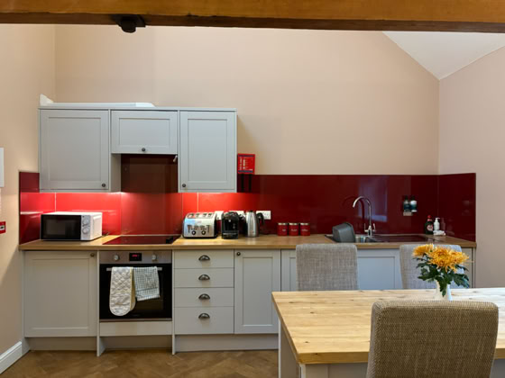 The Rolling Mill is a 1st floor apartment (of ‘The Barn’) comprising 2 bedrooms, both with super king beds (which can be split into singles), sleeping up to 4 adults. The apartment has a modern shower room, kitchen and living area.