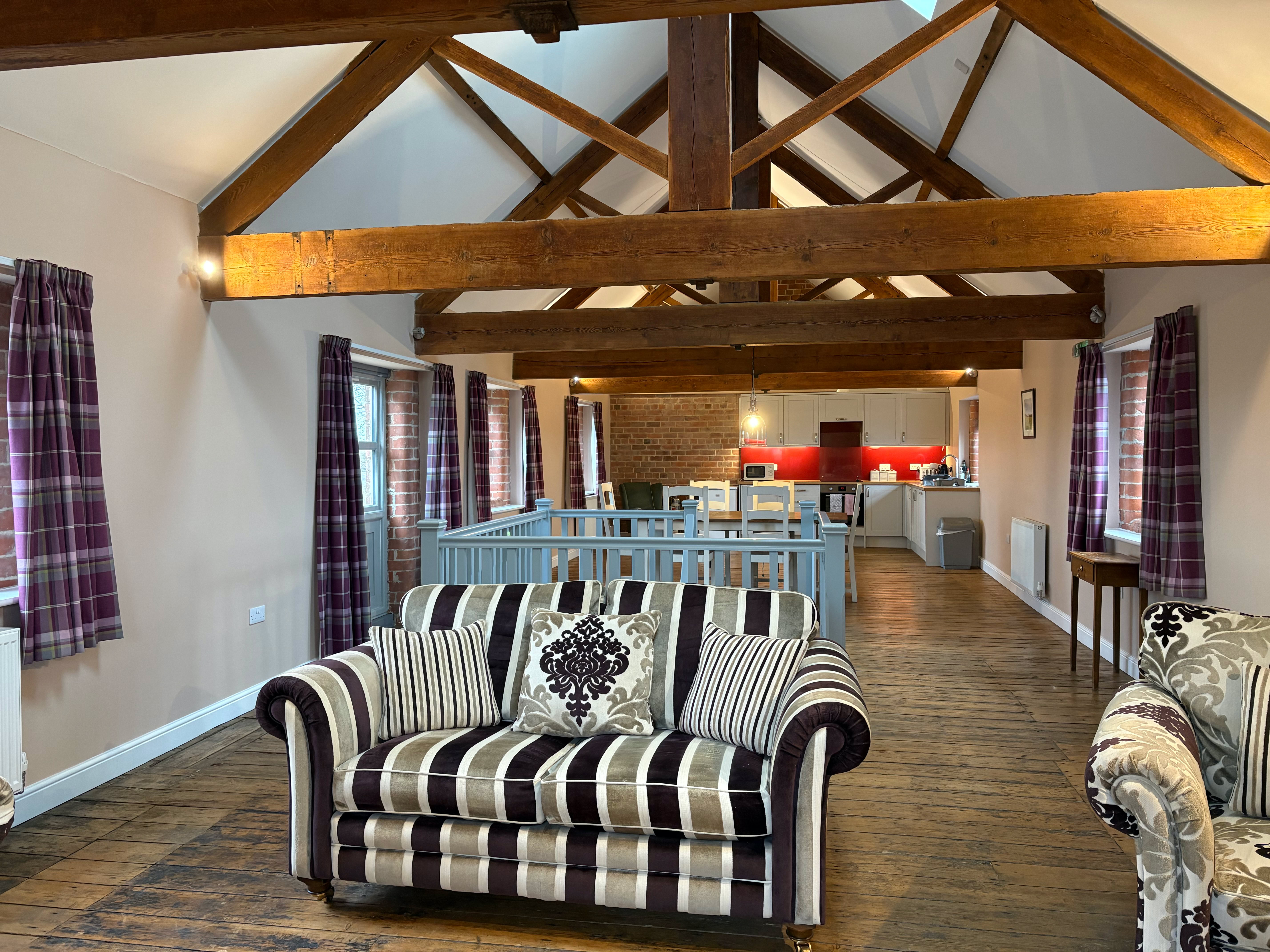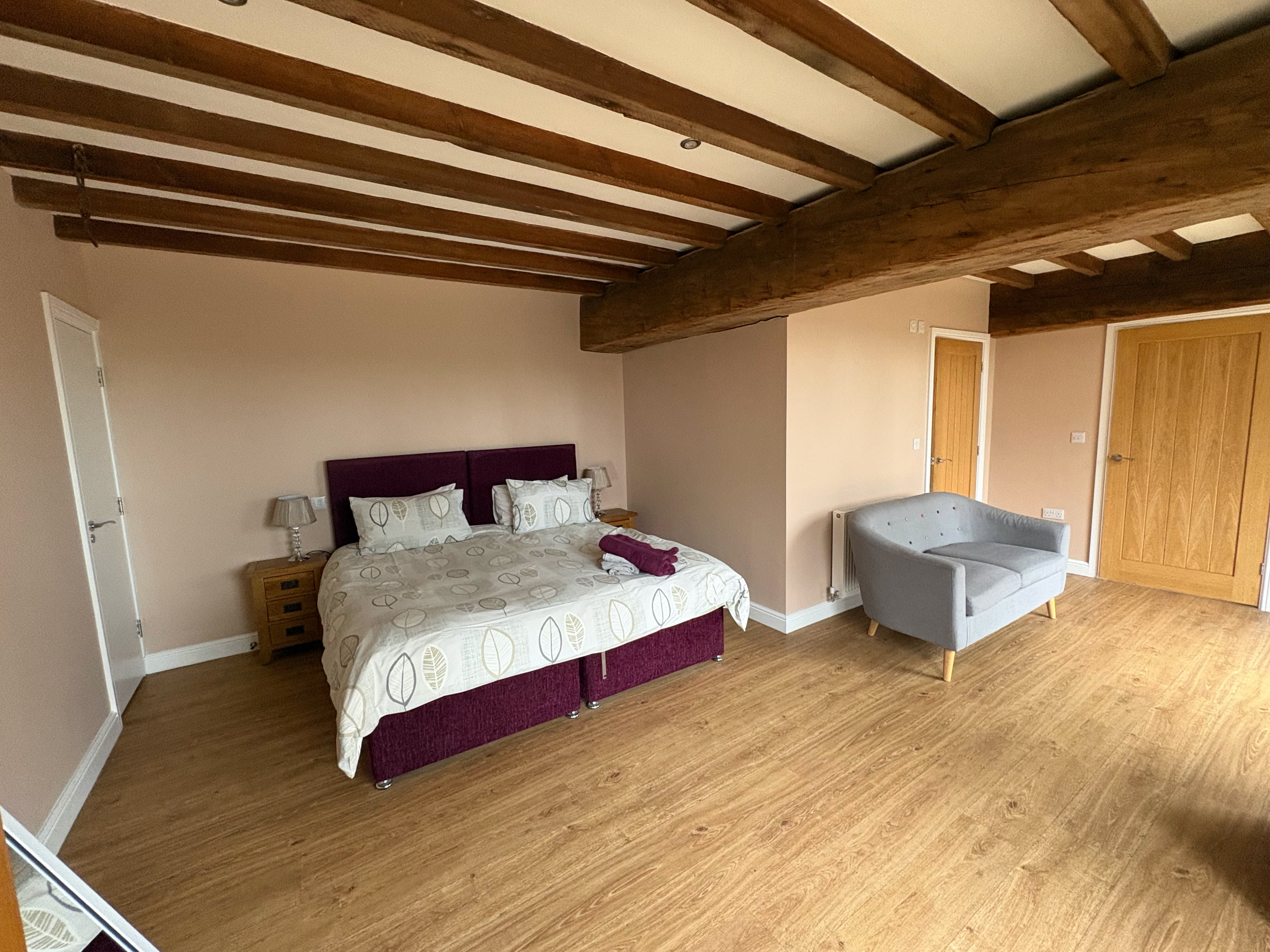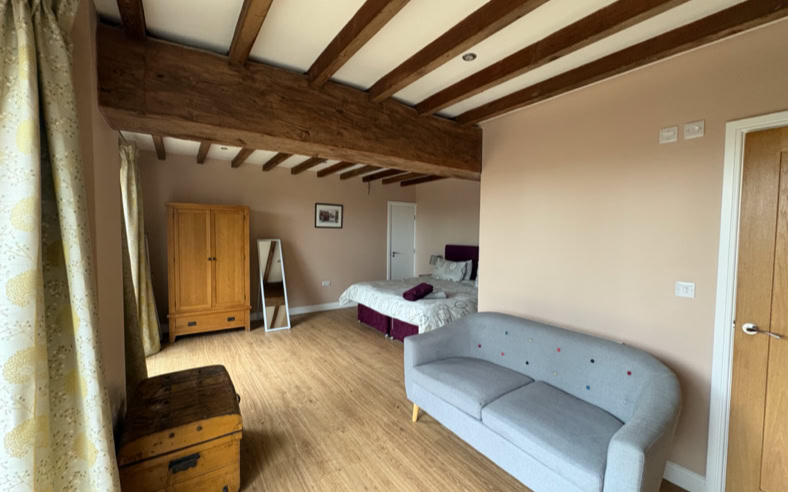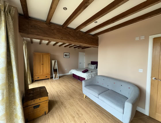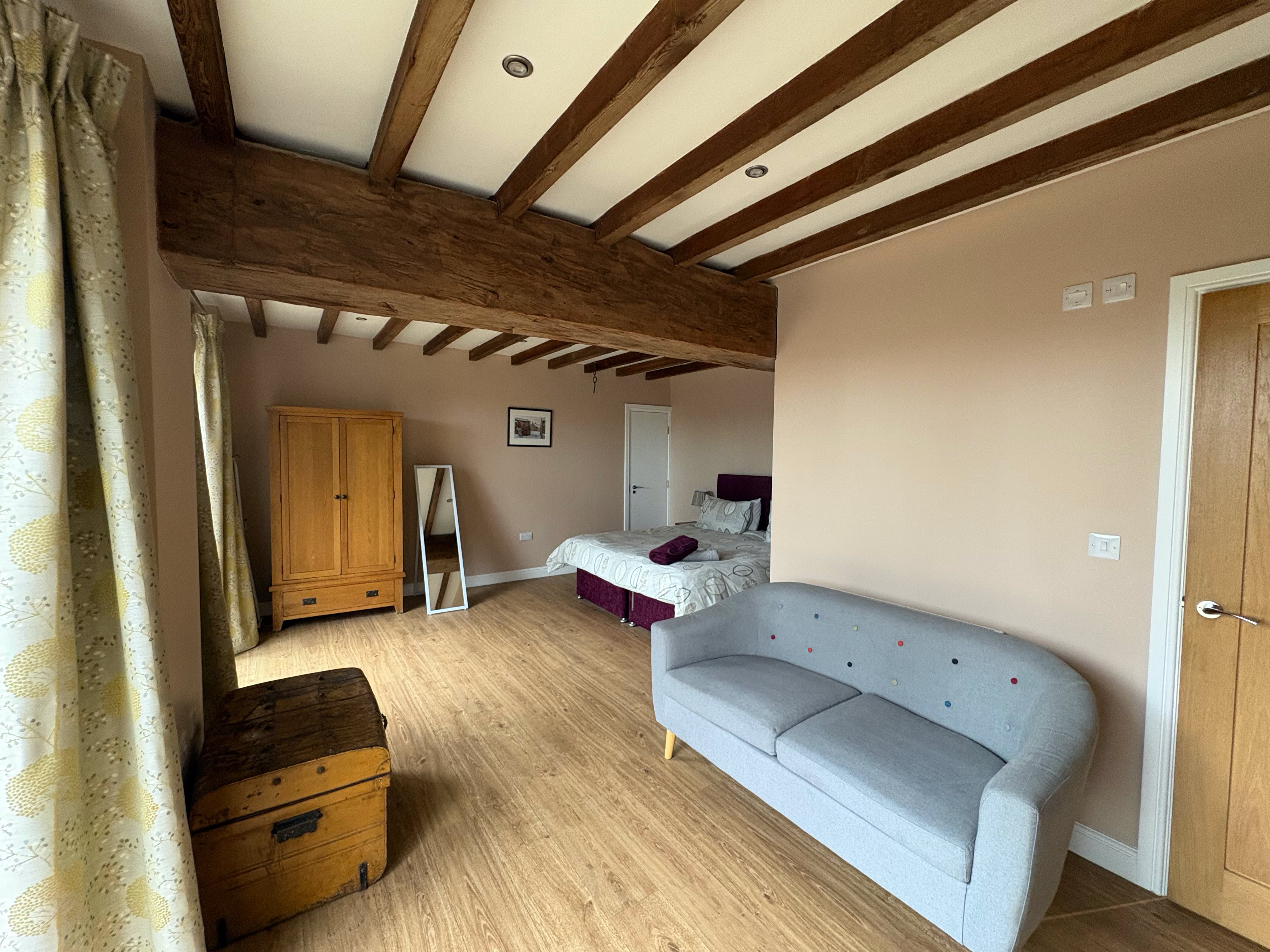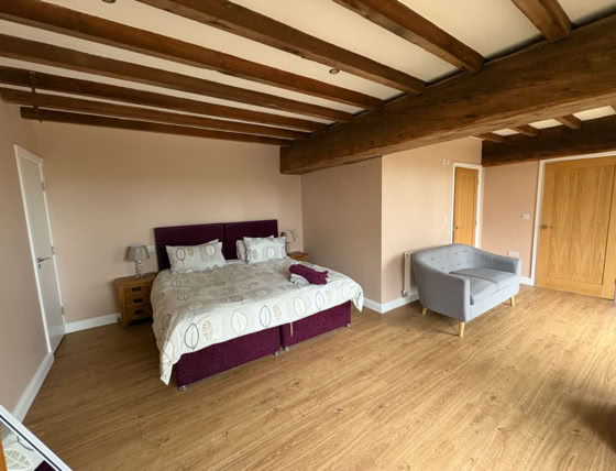 The Granary is an incredibly spacious converted barn, featuring 2x super king beds and a double bed (all of which can be split into singles), sleeping up to 6 adults. The cottage has 2 bathrooms and stairs that lead to the living area.