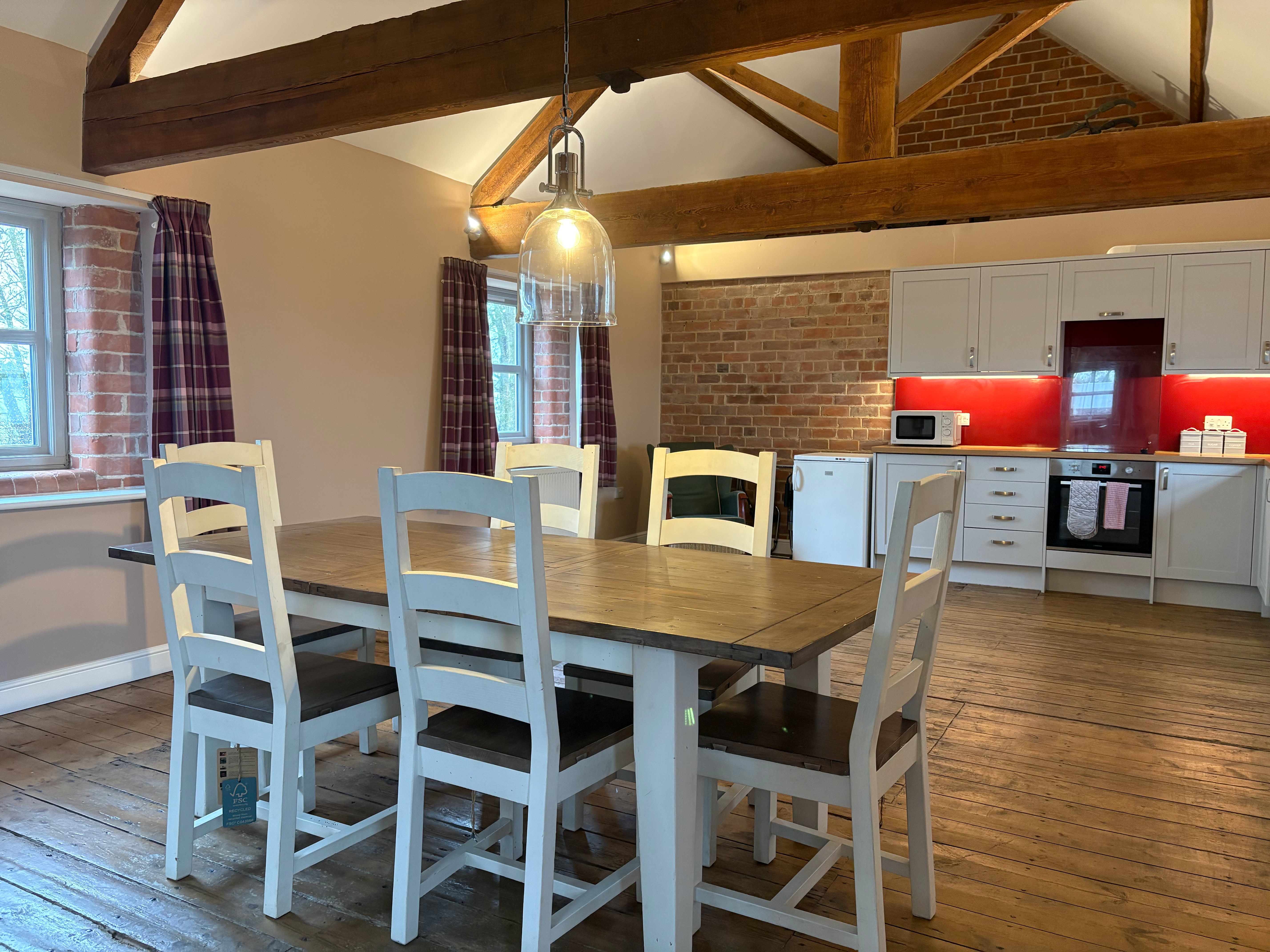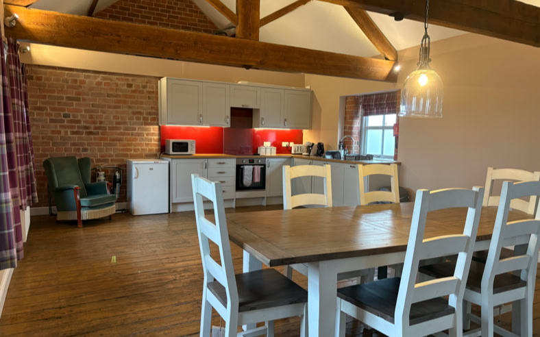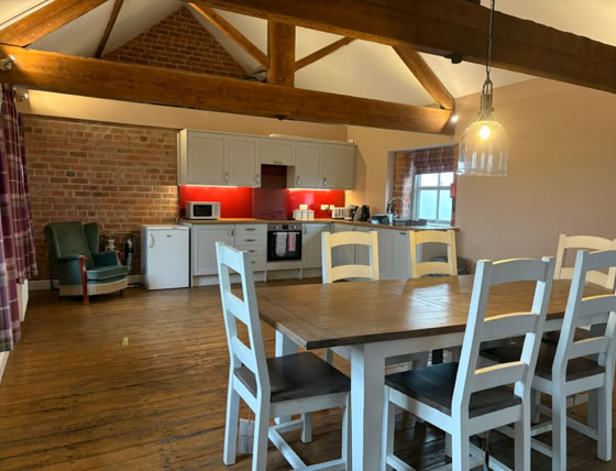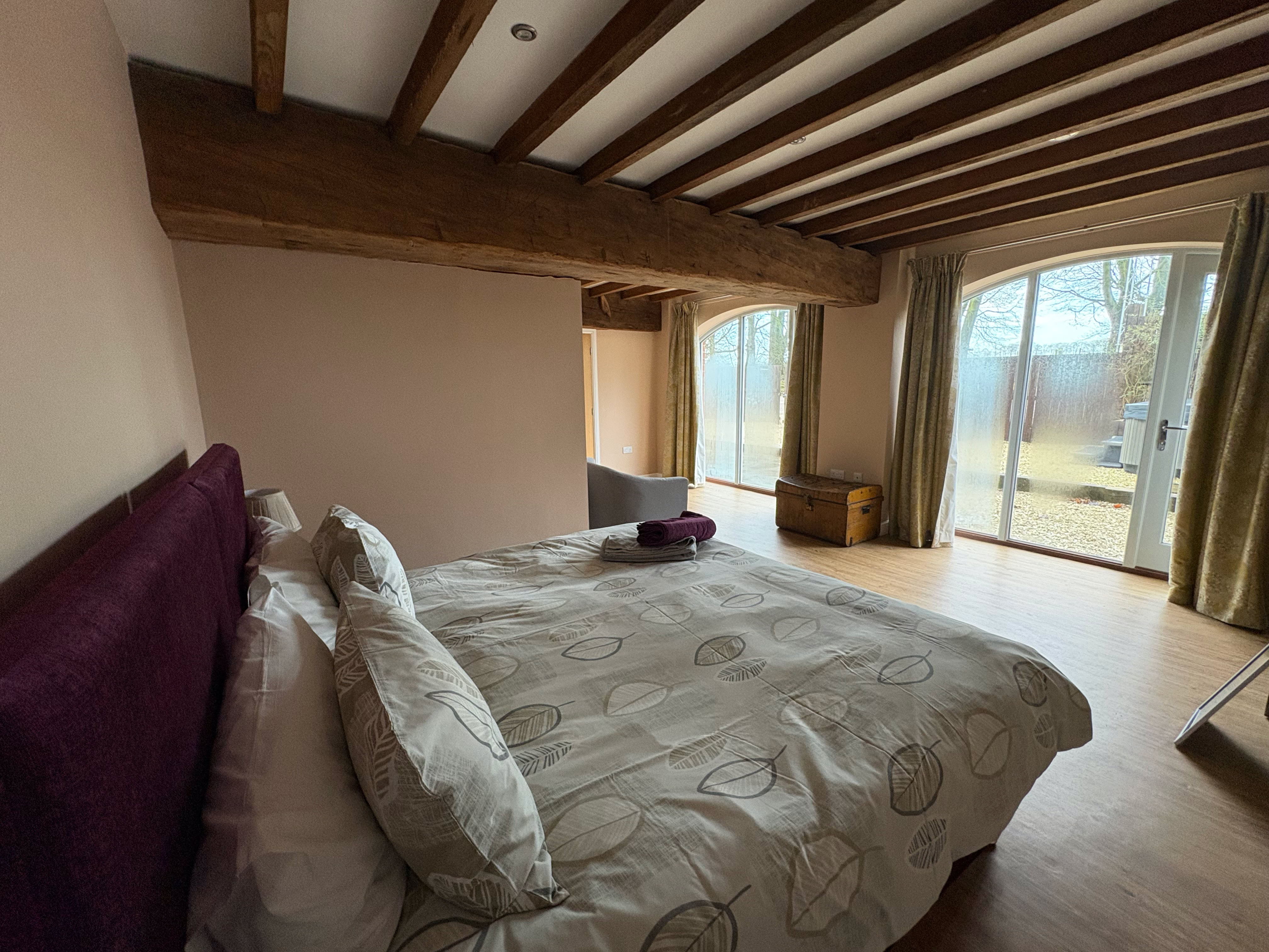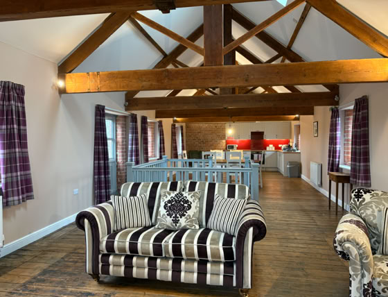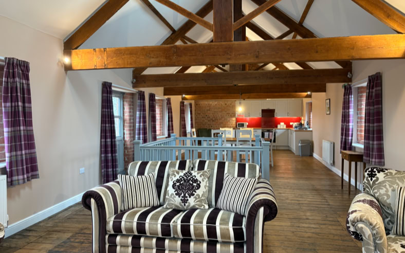 The Granary is an incredibly spacious converted barn, featuring 2x super king beds and a double bed (all of which can be split into singles), sleeping up to 6 adults. The cottage has 2 bathrooms and stairs that lead to the living area.