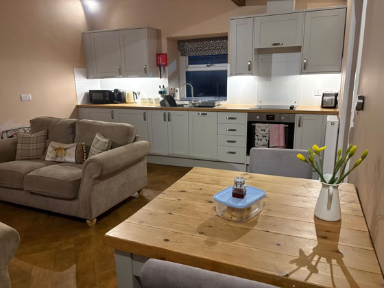The Milking Parlour is a studio apartment with a super king size bed (which can be made in to two singles), modern shower room and its own private garden.