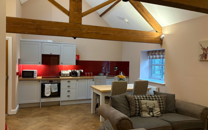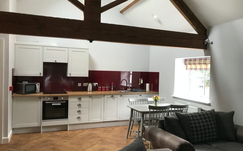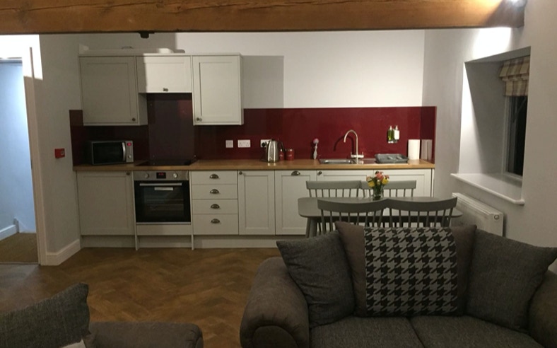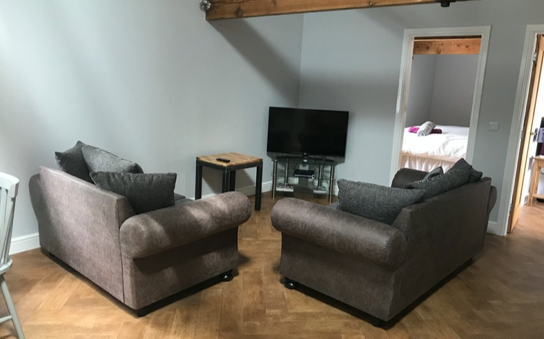 The Rolling Mill is a 1st floor apartment (of ‘The Barn’) comprising 2 bedrooms, both with super king beds (which can be split into singles), sleeping up to 4 adults. The apartment has a modern shower room, kitchen and living area.