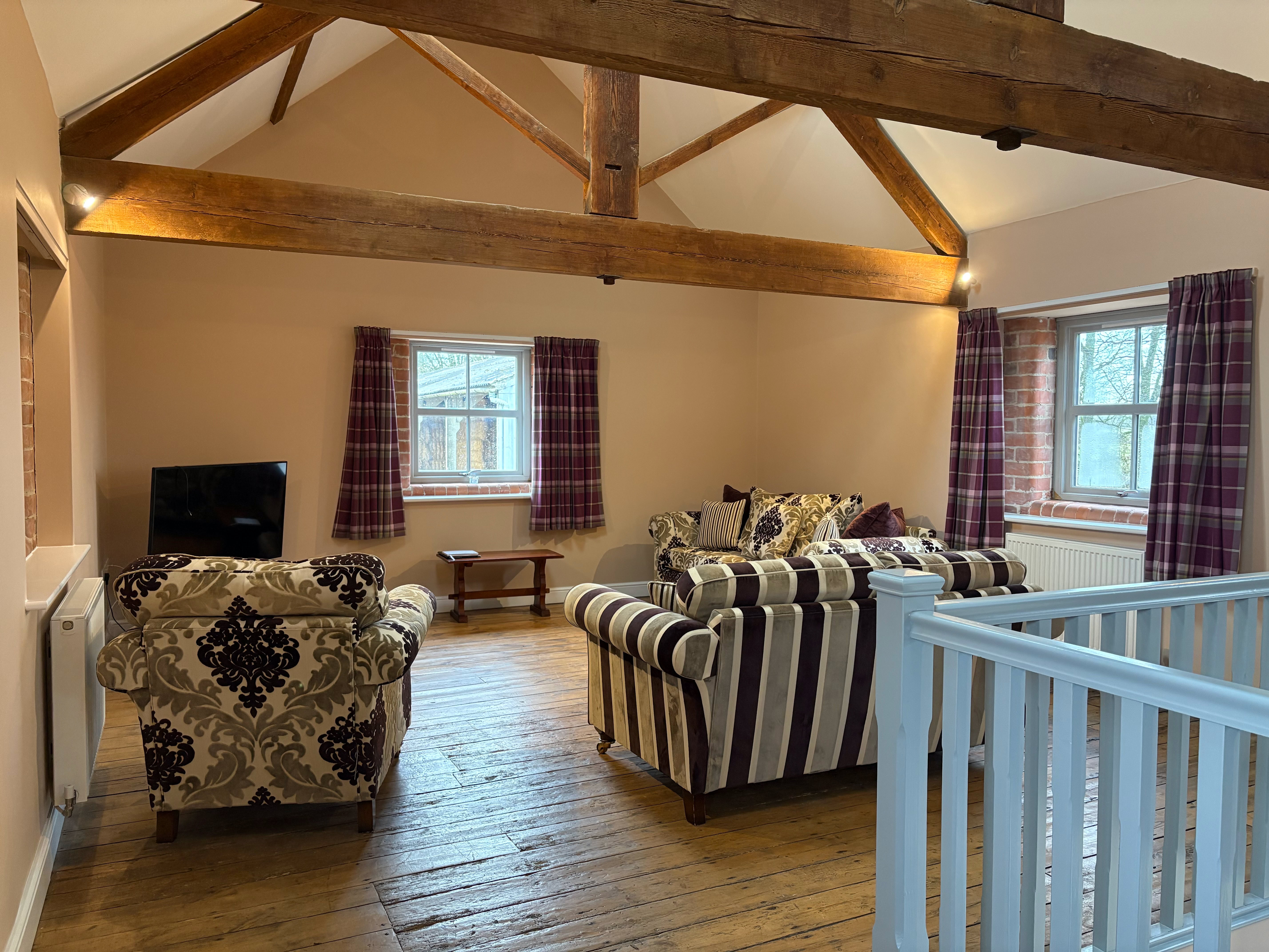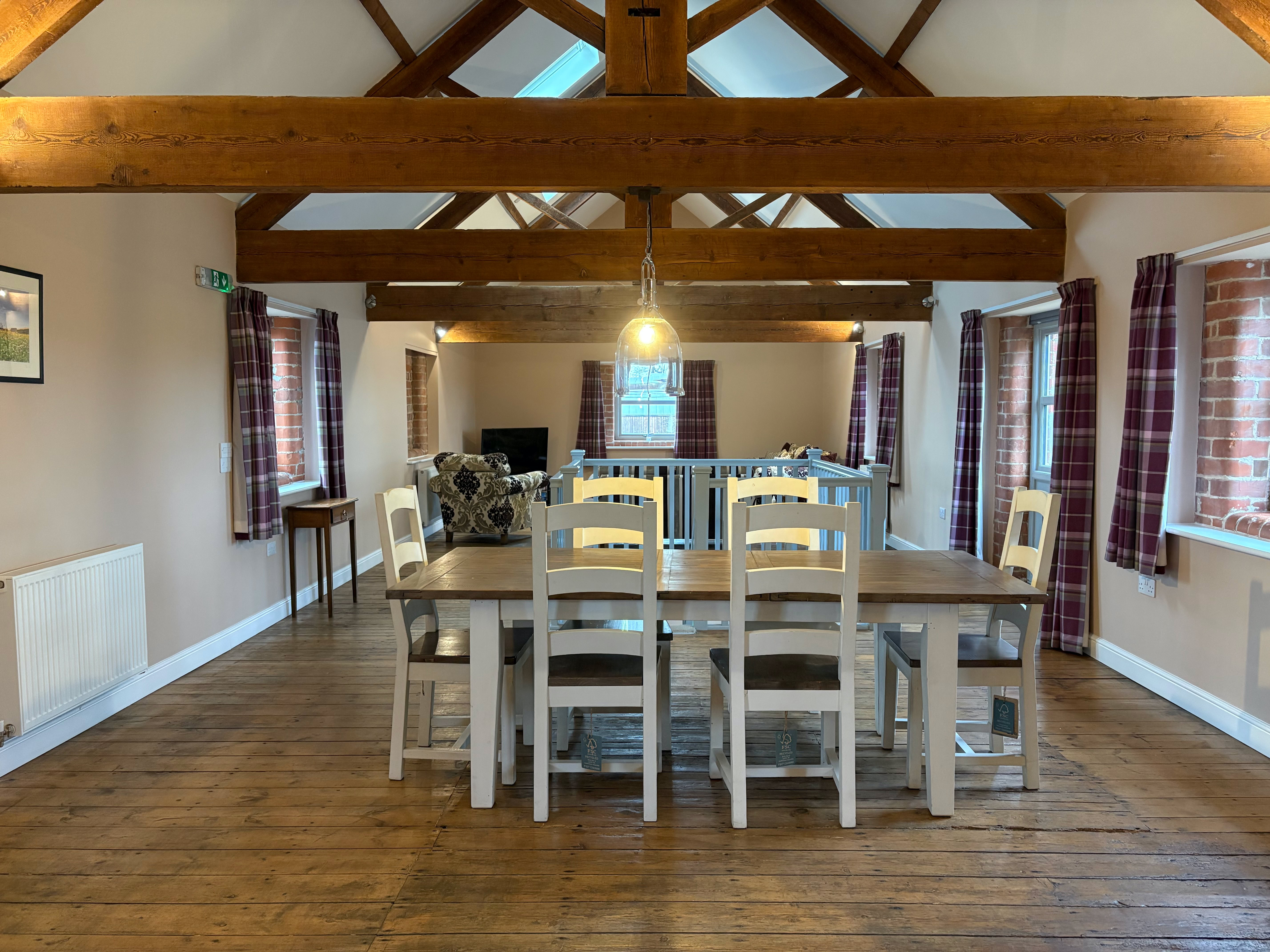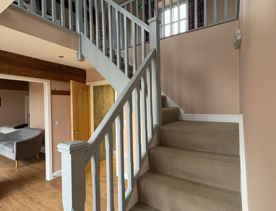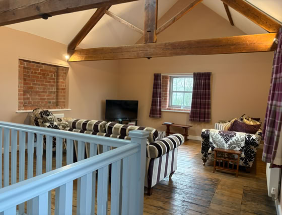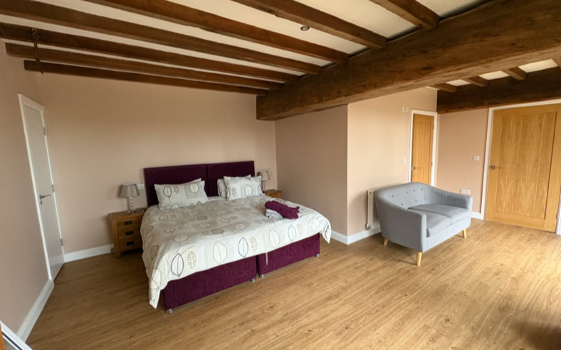 The Granary is an incredibly spacious converted barn, featuring 2x super king beds and a double bed (all of which can be split into singles), sleeping up to 6 adults. The cottage has 2 bathrooms and stairs that lead to the living area.