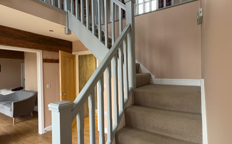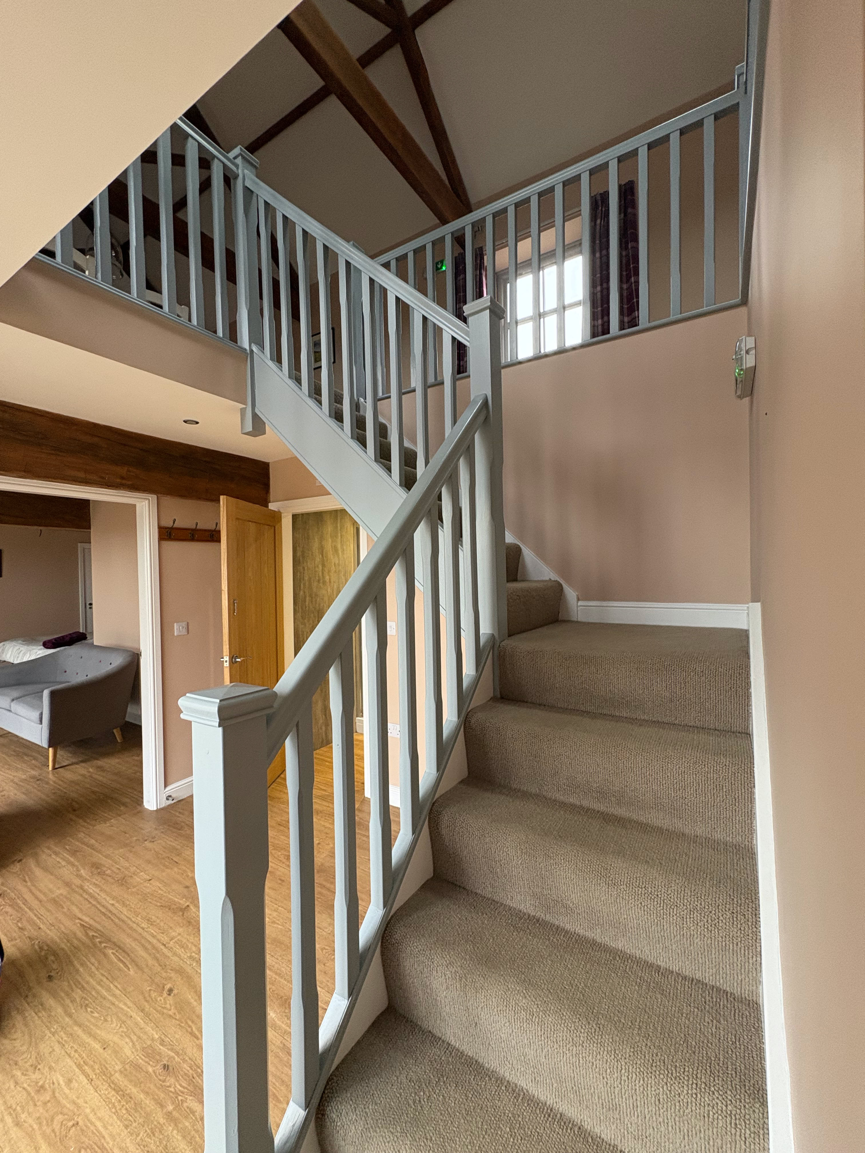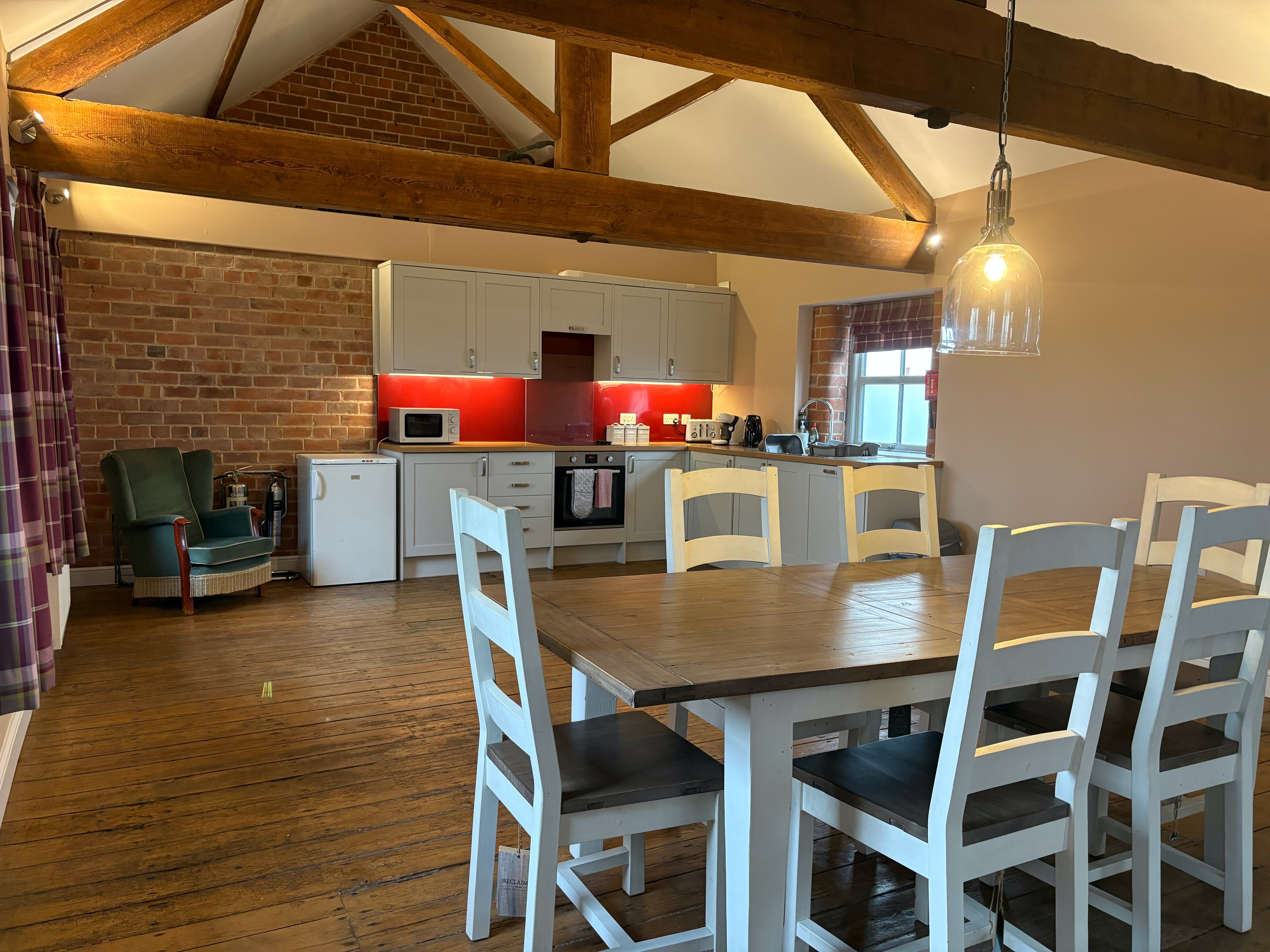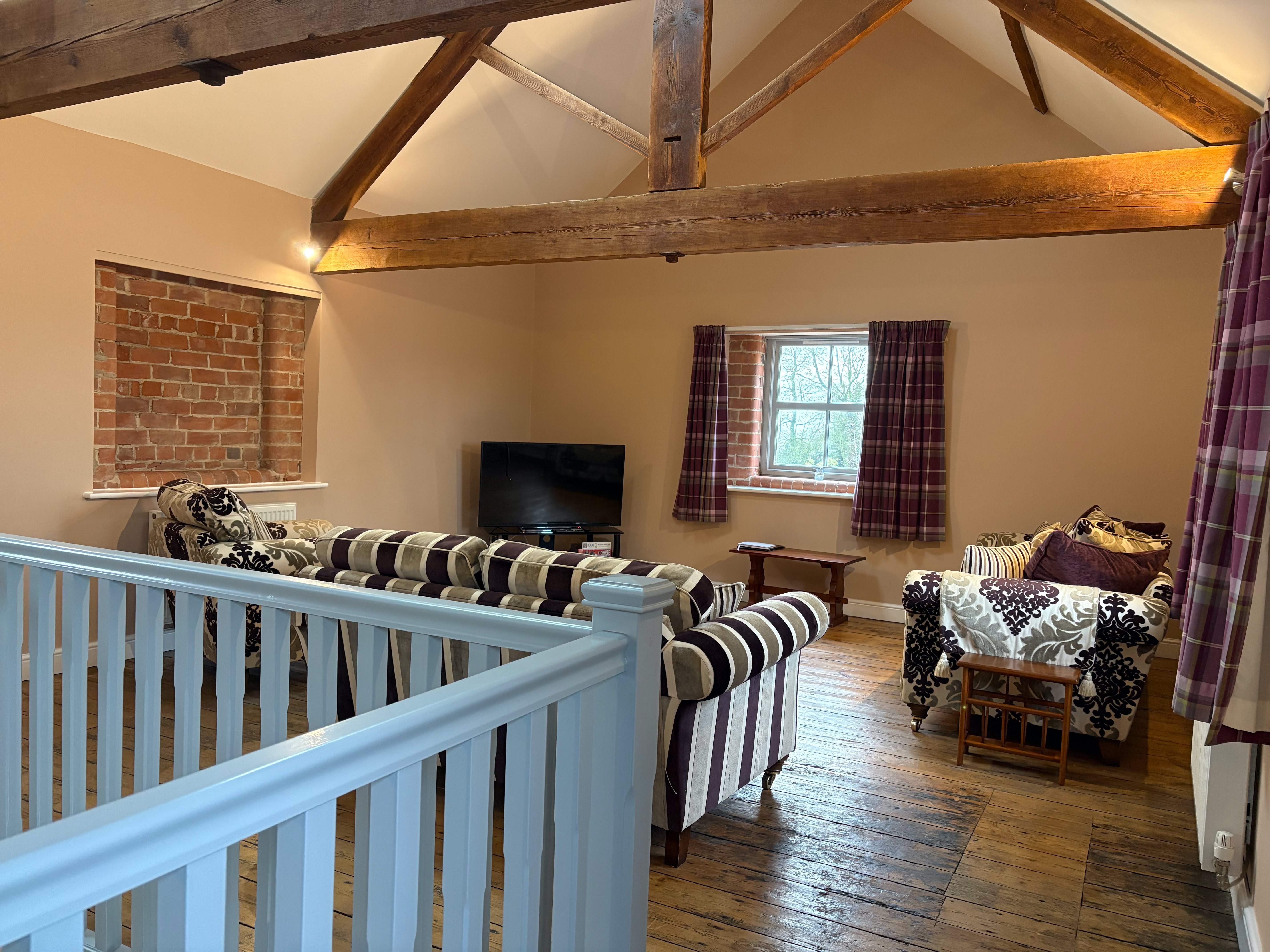 The Granary is an incredibly spacious converted barn, featuring 2x super king beds and a double bed (all of which can be split into singles), sleeping up to 6 adults. The cottage has 2 bathrooms and stairs that lead to the living area.